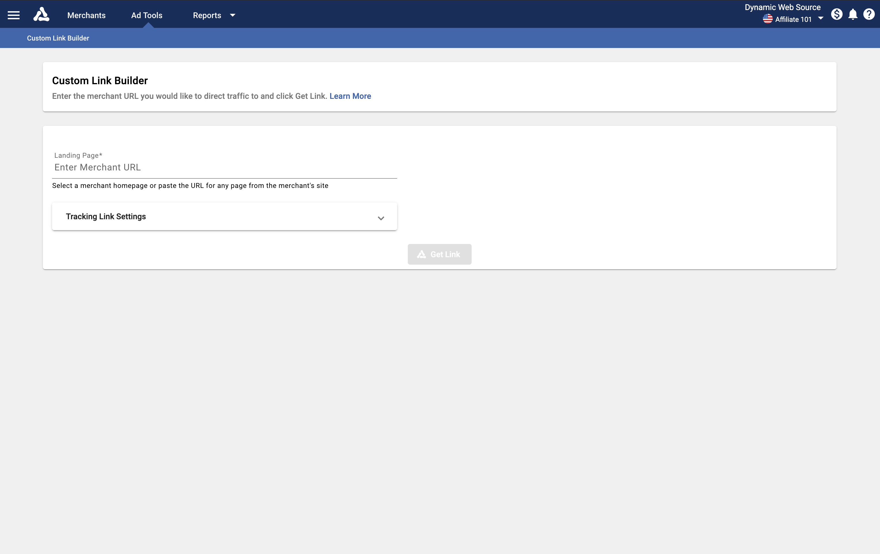 Navigate to Ad Tools > Custom Link Builder. There is also a shortcut to the Custom Link Builder on the affiliate dashboard.